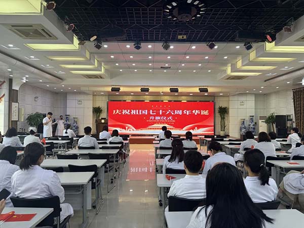 为庆祝伟大的祖国76周年华诞,9月30日上午,望京医院举行观看升旗仪式。院领导、职能处室负责人、职工代表参加升旗仪式。