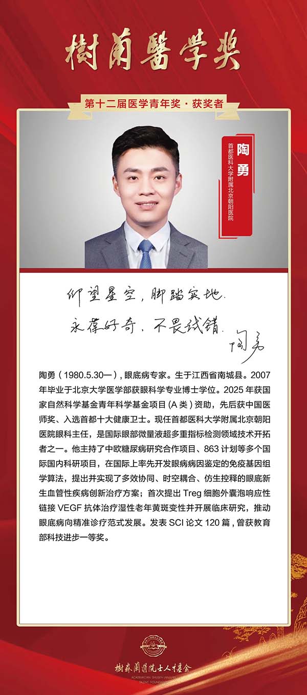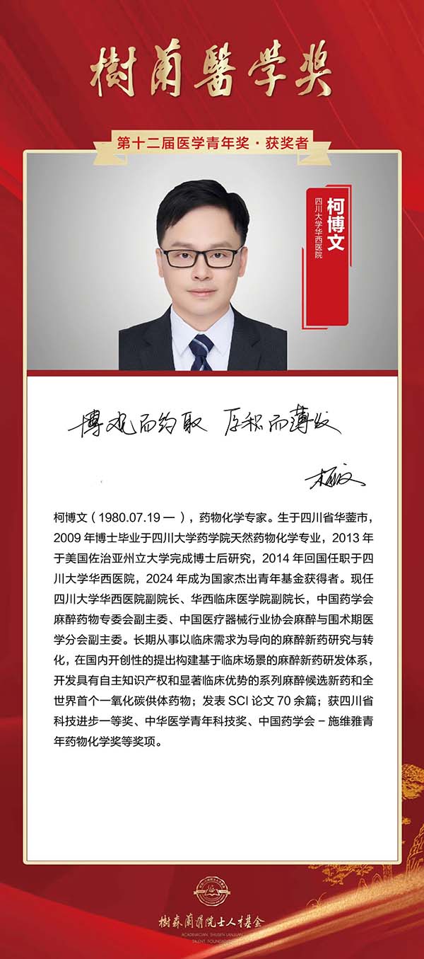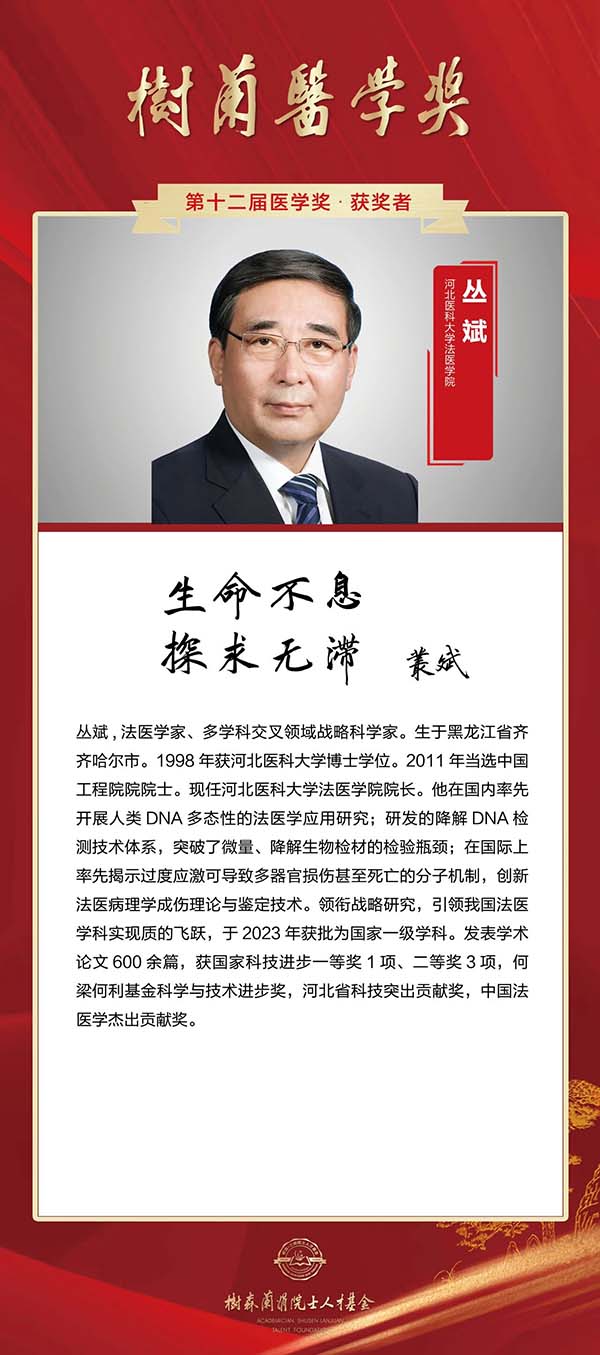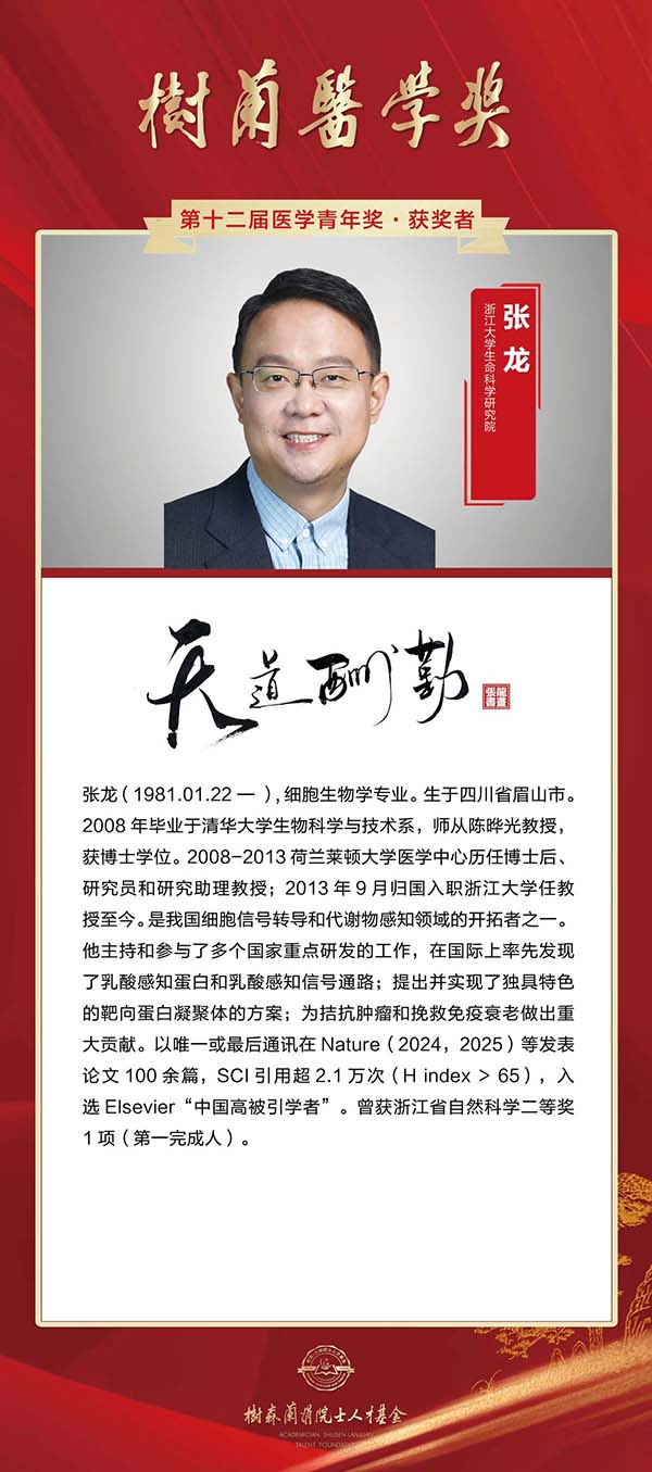 2025年12月6日,备受瞩目的第十二届“树兰医学奖”颁奖盛典在杭州隆重召开。丛斌院士、马骏院士、田金洲院士荣获“树兰医学奖”,洪韬、柯博文、舒易来、王婧、王超龙、陶勇、陆路、杨田、刘培峰、王峰、张龙、梁文华、魏戌、元唯安、谭婧共15位青年医学科学家摘取“树兰医学青年奖”桂冠。四大慢病重大专项技术总师陈竺院士,浙江大学教育基金会树兰基金理事长郑树森院士和李兰娟院士莅临指导大会并向获奖者颁发证书、奖杯、铭牌。
