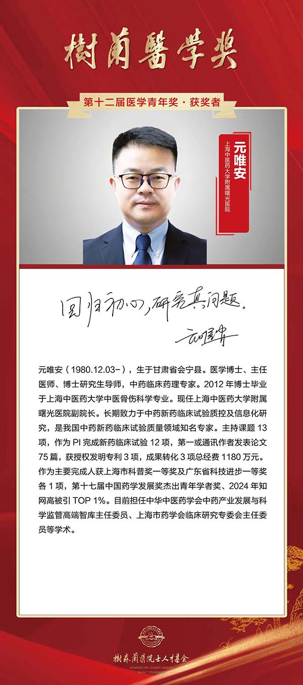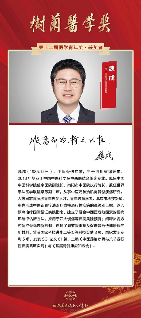 祝贺中国中医科学院望京医院魏戌副院长荣获第十二届“树兰医学青年奖”
