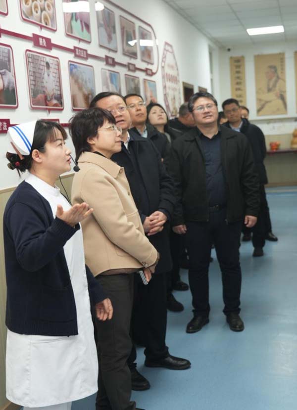 2025年12月19日上午,国家中医药管理局政策法规与监督司司长朱桂一行,在南阳市副市长张轩等陪同下,莅临国家中医(骨伤)区域医疗中心项目医院—南阳市中医院张仲景经方阁,专题调研中医药特色疗法及适宜技术开展情况。