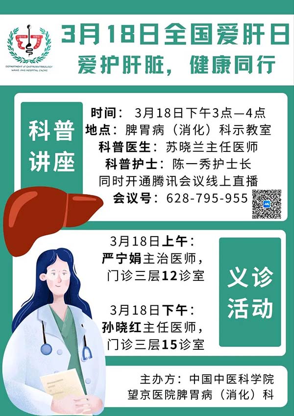 养肝护肝正当时,别让“肝”扰影响健康!3月18日全国爱肝日,中国中医科学院望京医院脾胃病(消化)科为您带来专业守护:
